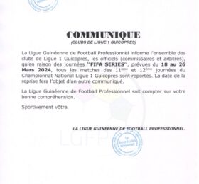CONAKRY- A travers un communiqué publié ce mercredi, la Ligue Guinéenne de Football Professionnel (LGFP) a annoncé l’arrêt...