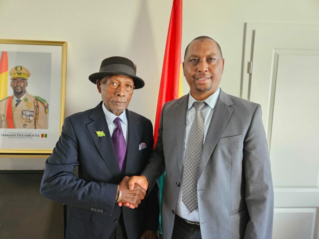 Dans le cadre du renforcement des liens entre la Mission diplomatique de la République de Guinée à Berlin et les compatriotes établis en République fédérale d’Allemagne, Son Excellence Monsieur Aliou BARRY, Ambassadeur Extraordinaire et Plénipotentiaire, a reçu le 06 novembre 2025, Monsieur Sékou Cissé (Siko) Doyen des Guinéens de Berlin, dans les locaux de la Chancellerie.
