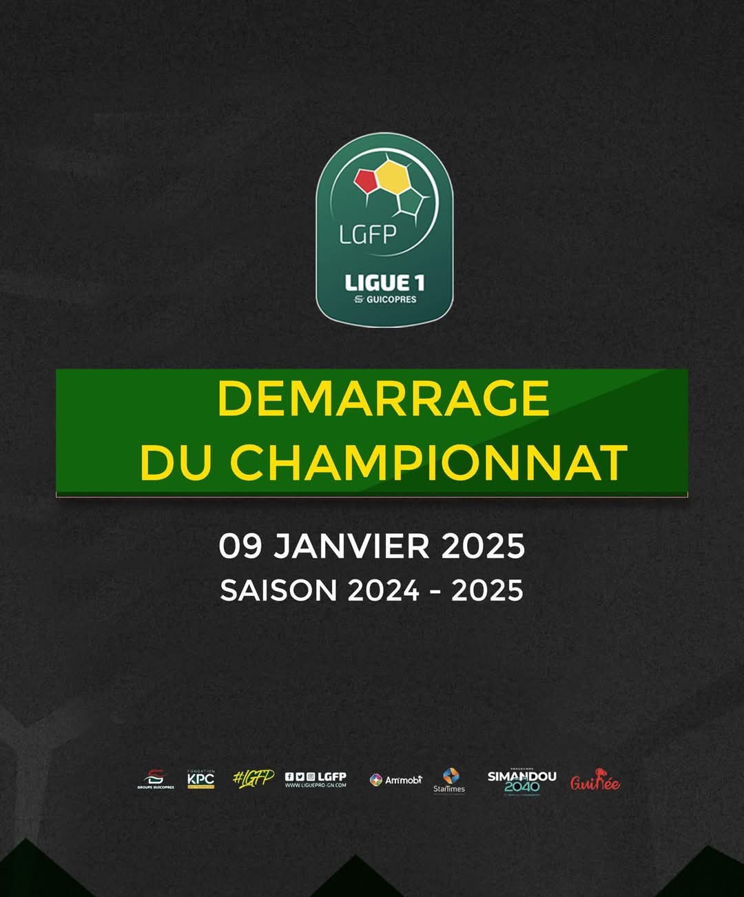 CONAKRY- Cette fois semble être la bonne. les 14 clubs de Ligue 1 et la Ligue Guinéenne de Football Professionnel se sont entendus sur une date pour le démarrage de la nouvelle saison sportive 2024-2025. Après avoir annoncé le payement des arriérés de 80 millions de francs guinéens aux clubs, la LGFP annonce que le championnat va démarrer le jeudi 9 janvier prochain sur toute l’étendue du territoire national.